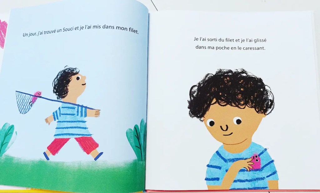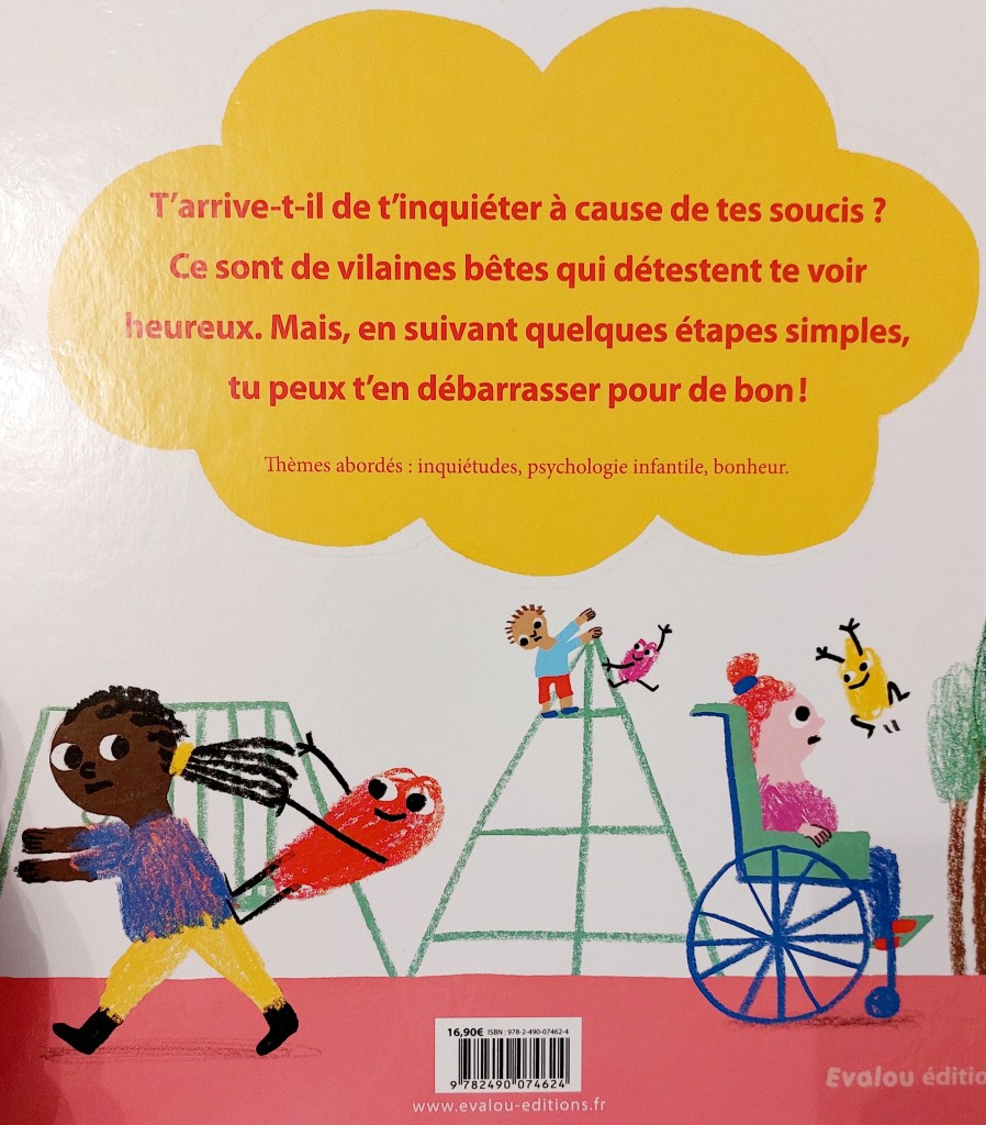 đ€ L’histoire est trĂšs belle. Un enfant qui a des soucis et qui se demande ce qu’il peut en faire et comment s’en dĂ©barrasser. Un sujet assez universel et qui pourra ĂȘtre abordĂ© avec les enfants de maniĂšre douce et ludique.