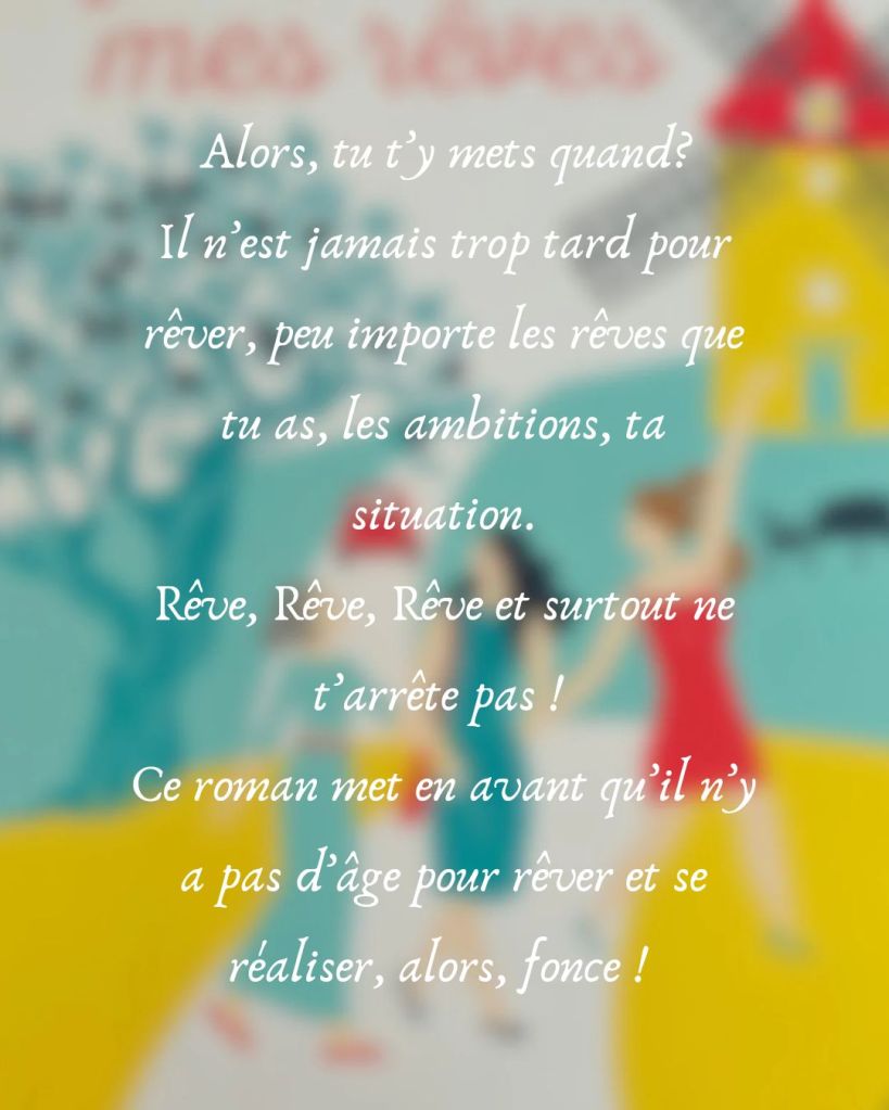 🌟 Comme tout est déjà dans ma chronique, j’ai juste envie de vous écrire quelques mots en rapport avec le thème. J’ai décidé de changer un peu la manière de présenter les romans que je lis car ils m’inspirent à écrire ✍️ et ce, depuis des années mais je n’ose pas. Quoi de mieux que d’appliquer des propres conseils, non ? 😊 Alors, je me lance, et qui sais, bientôt c’est toi qui me liras sous la forme d’un livre 📖 J’irai du bout de mes rêves, comme dirait l’autre 😁