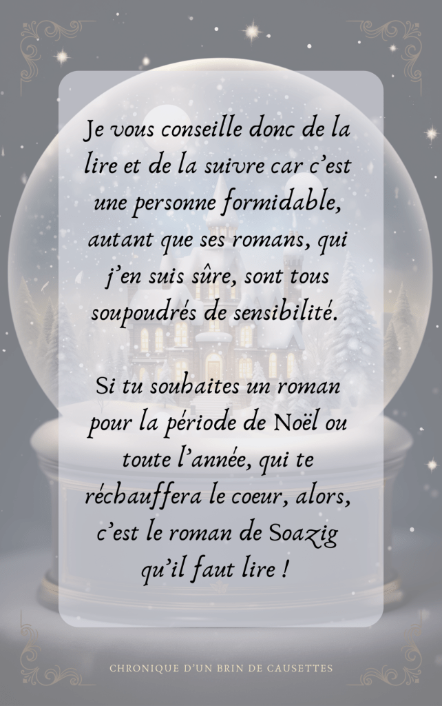 ☃️ Je vous conseille donc de lire la dernière pépite de Soazig et j’ajoute également tous ses romans à ma whislist 🎁🌟