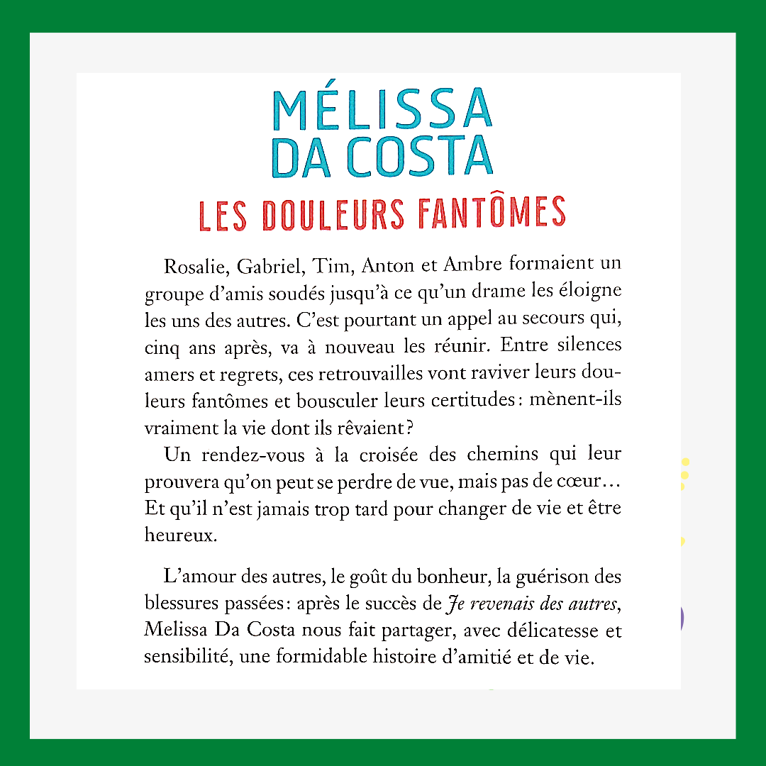 Coucou à vous ! Voici enfin mon retour sur le dernier roman de @melissa_da_costa_auteure » Les douleurs fantômes » (suite de » Je revenais des autres ». J’ai encore pleuré à chaudes larmes 😭