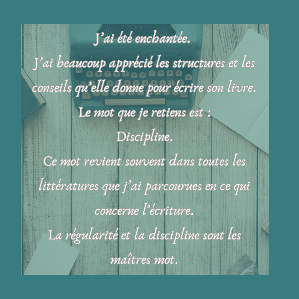 ✒️ Je le relirai quand je vais recommencer l’écriture de mon roman car en effet, la discipline est importante et c’est le mot qui revient le plus souvent quand on veut se lancer dans l’écriture 💪